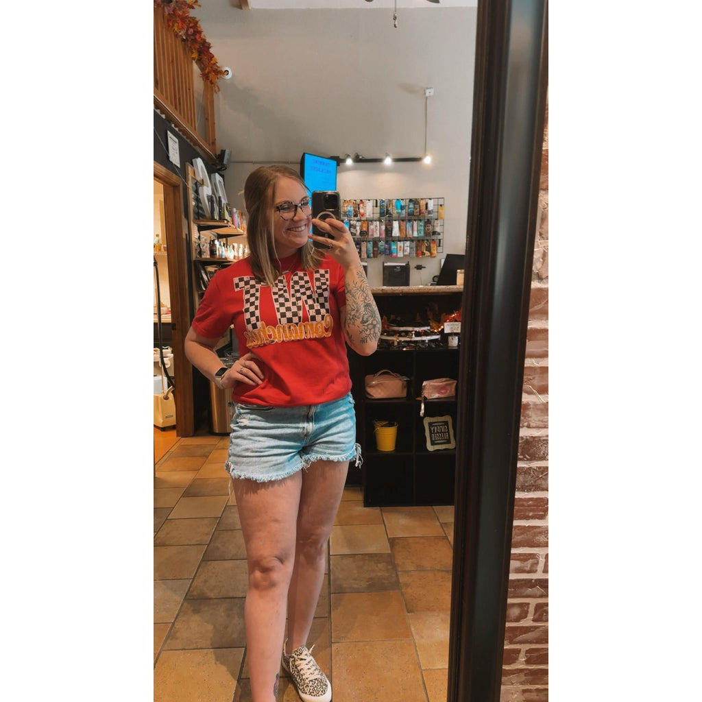 This custom checkered WT tee is adorable and we are in love! Grab one and pair it with some of your favorite distressed jeans.