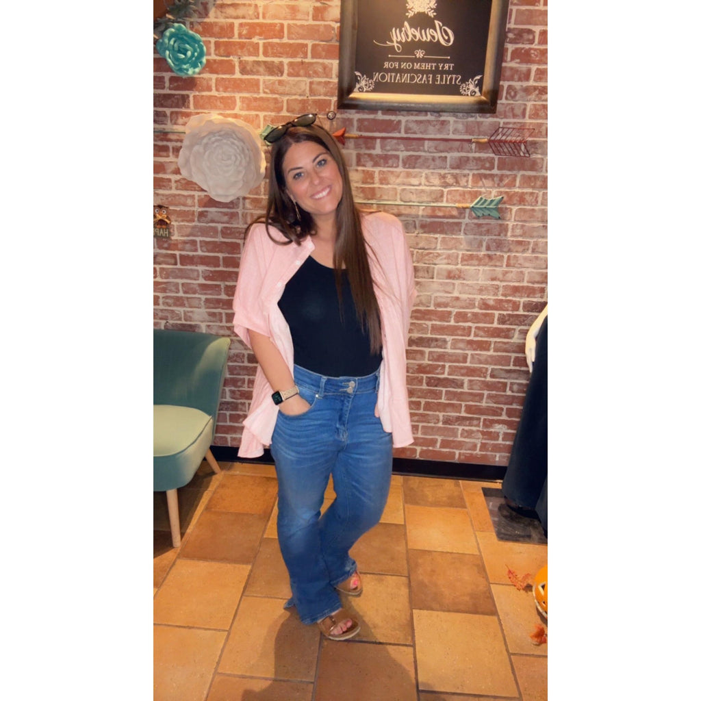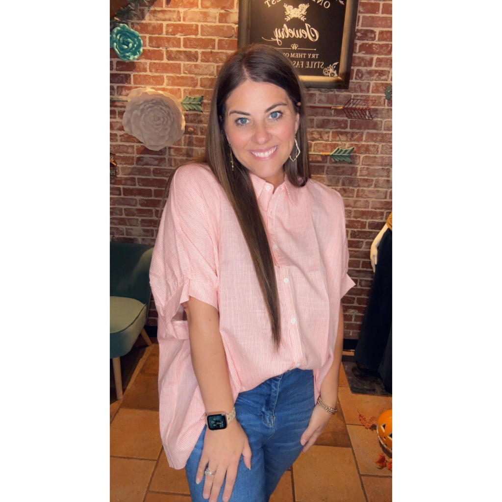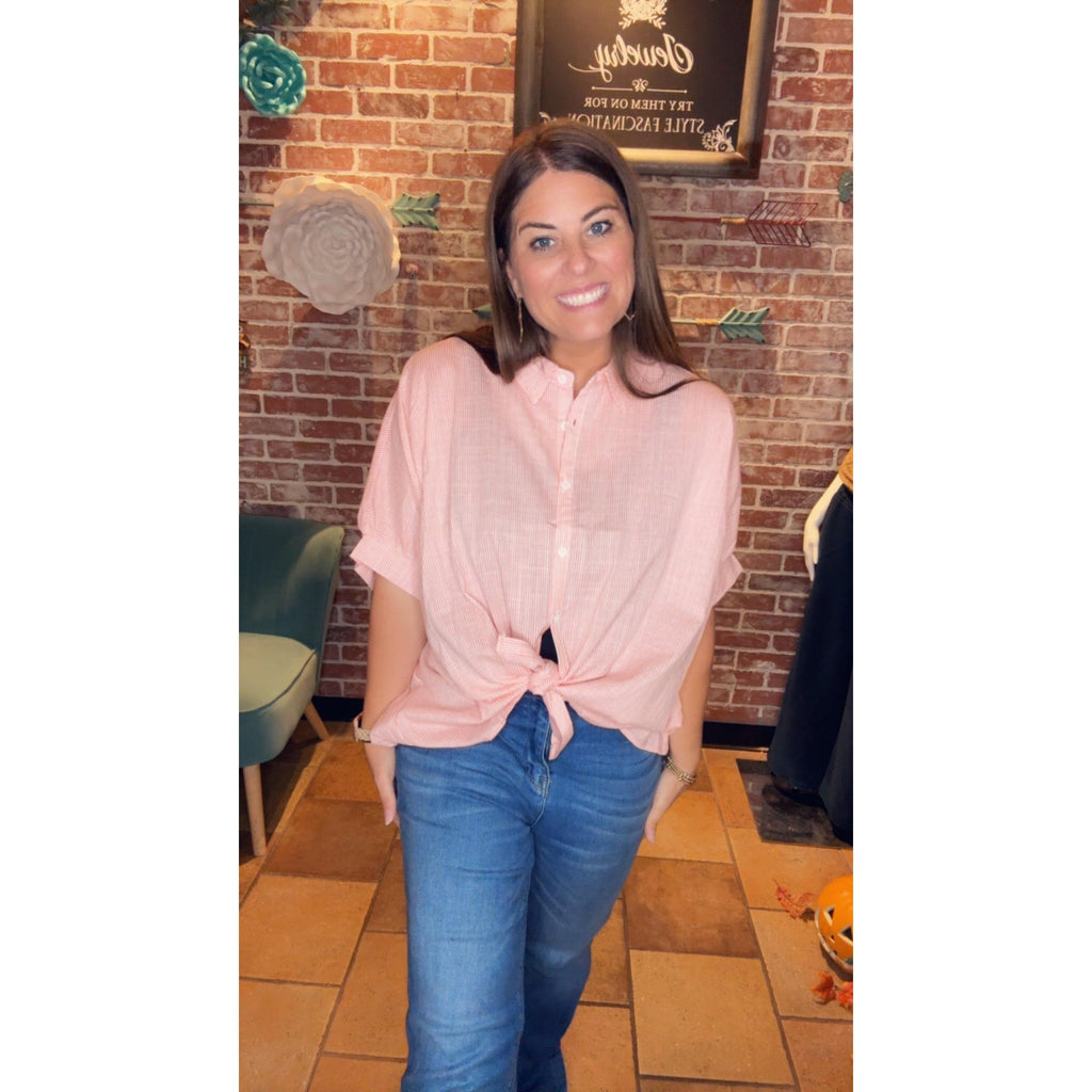 Our Kasi top will be the perfect addition to your closet this spring. You can wear it in a front tuck with your distressed jeans or white shorts. It is oversized so you might want to size down.